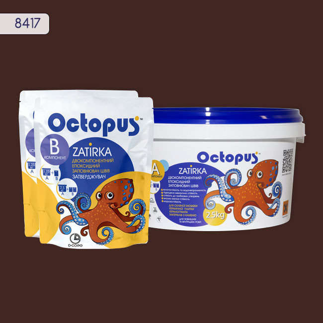 Двухкомпонентная эпоксидная затирка фуга для плитки и мозаики ТМ "OCTOPUS", цвет шоколад 2,5 кг.Двухкомпонентная эпоксидная затирка фуга для плитки и мозаики ТМ “OCTOPUS”, цвет шоколад 2,5 кг.