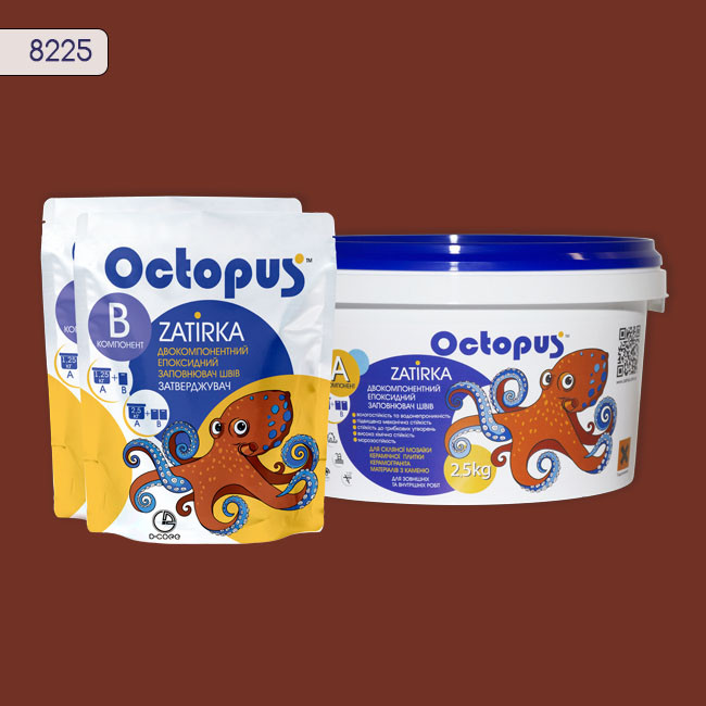 Двухкомпонентная эпоксидная затирка фуга для плитки и мозаики ТМ "OCTOPUS", цвет терракотовый 2,5 кг.Двухкомпонентная эпоксидная затирка фуга для плитки и мозаики ТМ “OCTOPUS”, цвет терракотовый 2,5 кг.