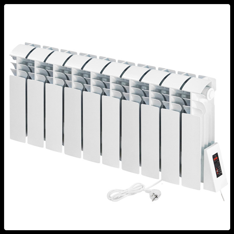 Радиатор внешне выглядит как алюминиевый окрашенный – обеспечивает высокую прочность и возможность работать при повышенном давлении. Нагревательный элемент выполнен из нержавеющей стали, расположен в нижней части электробатареи по всей её длине. В качестве теплоносителя используется специальная жидкость на основе пропилен–гликоля, она передаёт тепло от ТЭНа к стенкам радиатора.