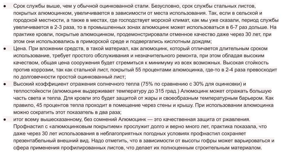 - Высокий коэффициент отражения солнечного тепла ( отражает до 75 % солнечных лучей , по сравнению с 30% отражением для оцинкованной стали)
