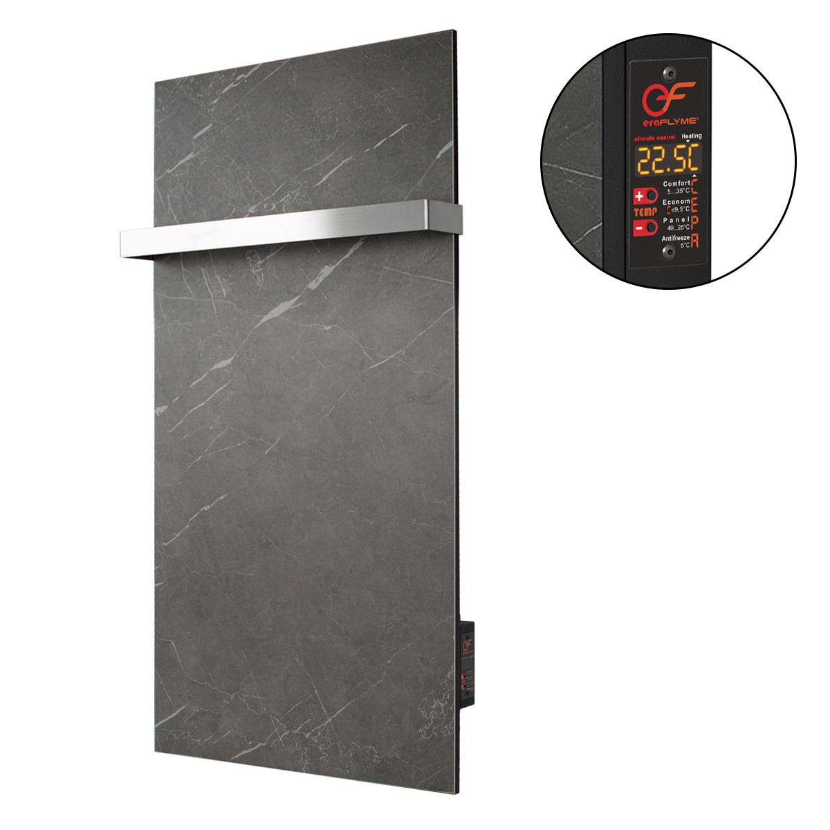 Інфрачервоний обігрівач-рушникосушка FLYME темний камінь — це сучасне та багатофункціональне рішення для обігріву ванної кімнати, житлових приміщень або офісу. Основна особливість цього обігрівача — можливість використання перекладини для сушіння рушників. У комплекті постачається одна перекладина, а при потребі можна докупити додаткові. Завдяки цьому обігрівач одночасно виконує функції опалювального приладу та рушникосушки, економлячи простір і електроенергію.