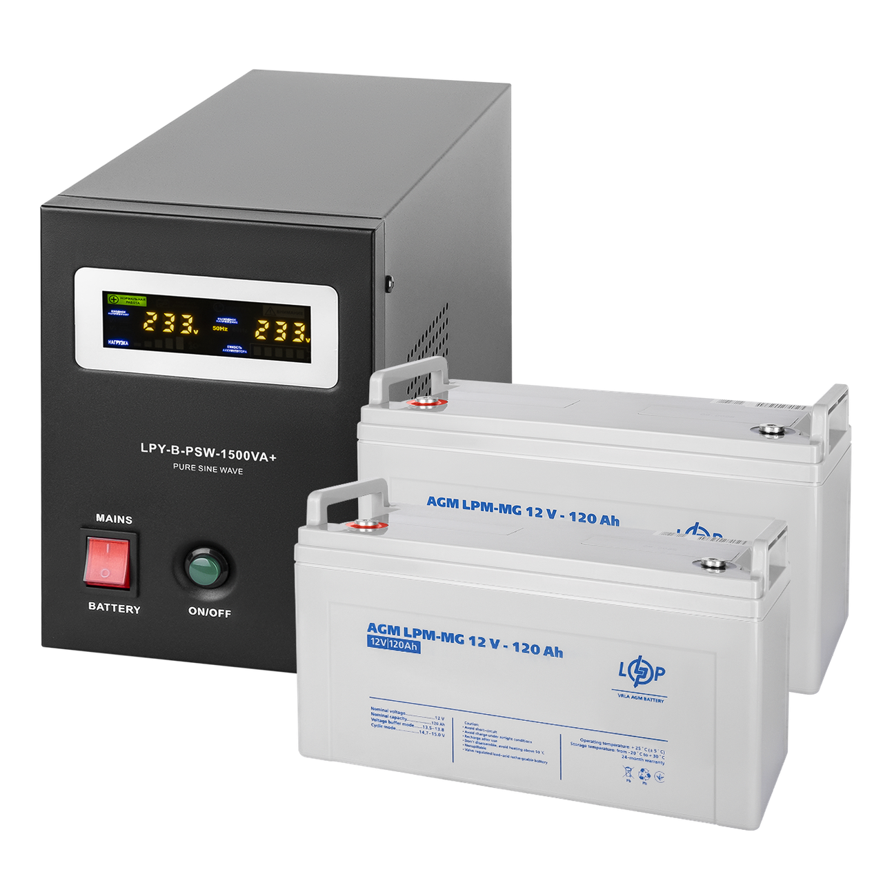 Комплект резервного питания LogicPower ИБП B1500 + мультигелевая батарея 2880Wh разработан и введен в эксплуатацию для обеспечения бесперебойного питания электрических газовых котлов, систем видеонаблюдения, компьютерной техники и других устройств, которые работают в режиме 24/7/365. Комплект может быть использован, как источник бесперебойного питания для бомбоубежища.