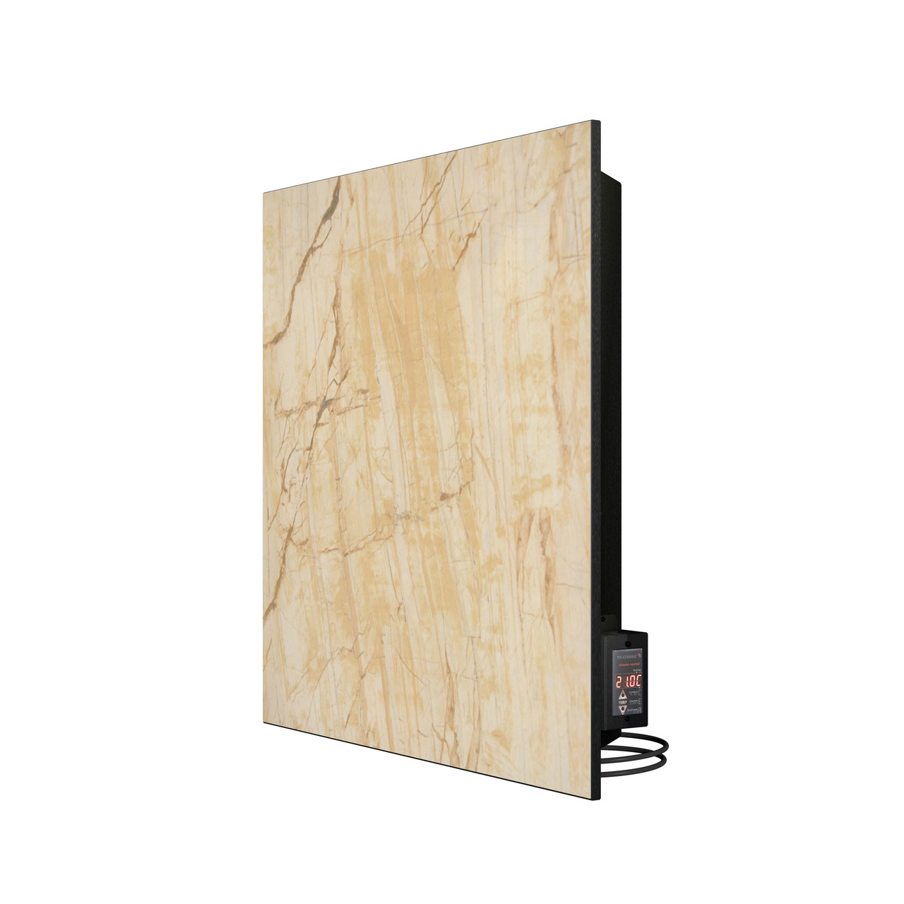 TEPLOCERAMIC ТС500С .Данное устройство имеет размеры 60х60см и мощность 500Вт и имеет ряд существенных отличий. Укомплектовано встроенным программируемым терморегулятором, который позволяет настраивать работу устройства, опираясь как на данные о температуре воздуха, так и на температуру поверхности устройства, что позволяет еще больше экономить на затратах на электроэнергию. Встроенные программатор так же позволяет настроить устройство на разные режимы работы в течении суток для каждого дня недели. Изменена конструкция корпуса и внутренних элементов таким образом, что генерируемое задней частью керамической плиты тепло прогревает воздух и создает конвекционный поток. Благодаря оригинальной конструкции, задняя стенка устройства имеет температуру всего около 40°С – таким образом устройство эффективно производит обогрев помещения, а не «греет стену». Устройство имеет современный дизайн и обогревает, как инфракрасным теплом, так и прогревает воздух, создавая тепловой поток. Устройство абсолютно безопасно для здоровья и не сушит воздух. Следует отметить, что при использовании данного устройства экономия на отоплении достигает до 30% по сравнению с использованием радиаторов или тепловентиляторов. Устройство очень простое в использовании, быстро и просто монтируется и не требует дополнительного обслуживания.