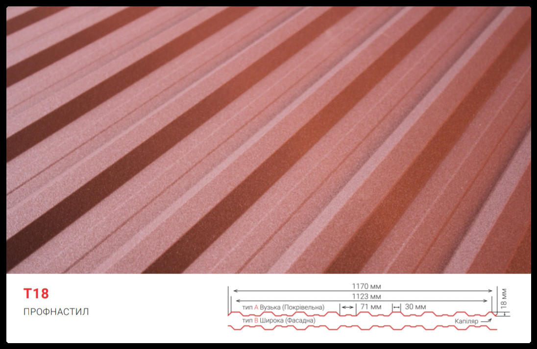 Профнастил для стен и для кровли T-18 купить в Киеве и Украине по низкой цене от производителя.